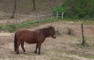 Jivaro est un poney aujourd’hui âgé de 26 ans. Il est né au village de Vernioz (Isère) dans la propriété de Danielle et Gérard, bénévoles de l’association. Grandissant avec la petite fille de la famille, il a été très tôt habitué au contact des humains avec lesquels il est en pleine confiance. Jivaro a porté l’enfant pour ses premières promenades et ses débuts en équitation en centre équestre. Eduqué à l’attelage, il transporte petits et grands sur les chemins de la communes. C’est naturellement qu’il est devenu le partenaire des médiations équines. Il coule aujourd’hui des jours tranquille, profitant de sa retraite.